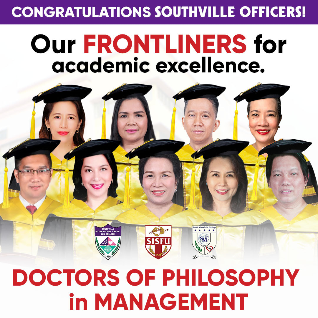 Southville congratulates the following upon completion of their Ph.D. in Management from the Lyceum of the Philippines University, Batangas in 2020: